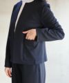 リラックスシルエットのジャケットです。デュアルウォームポンチよりも生地に光沢があり、ストレッチ性に優れたしなやかな素材感。