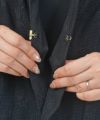 フロントに配したゴールドの留め具が、
