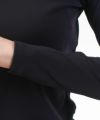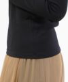ミニマムな印象のハイネックは、短めの立ち襟が季節を問わず着回せる