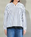 ストライプワッシャーフーディブラウス