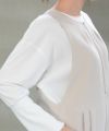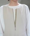 また襟元のファスナーで顔周りを華やかに、ボトムはカーヴィーシルエットを採用し