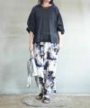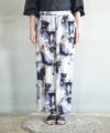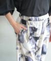 抽象的なプリントが印象的な、「ニュービーナスデシン 柄パンツ」。