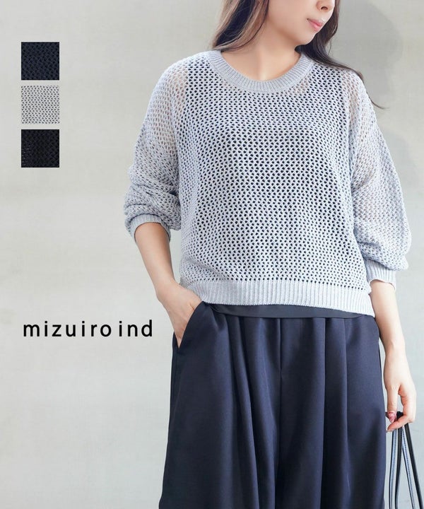 ワイドな身幅とお袖がゆったりとしたシルエットを叶えてくれる、印象的なメッシュニット。