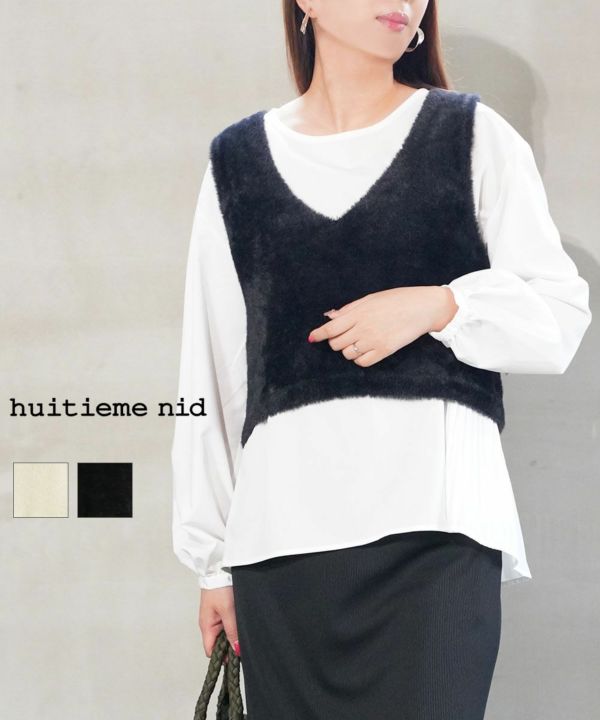 フェザーのニットベストにプリーツブラウスがセットになったアイテムが届きました!