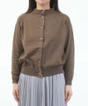 モックネック仕立てのネック周りを活かして、ボタンを留めて