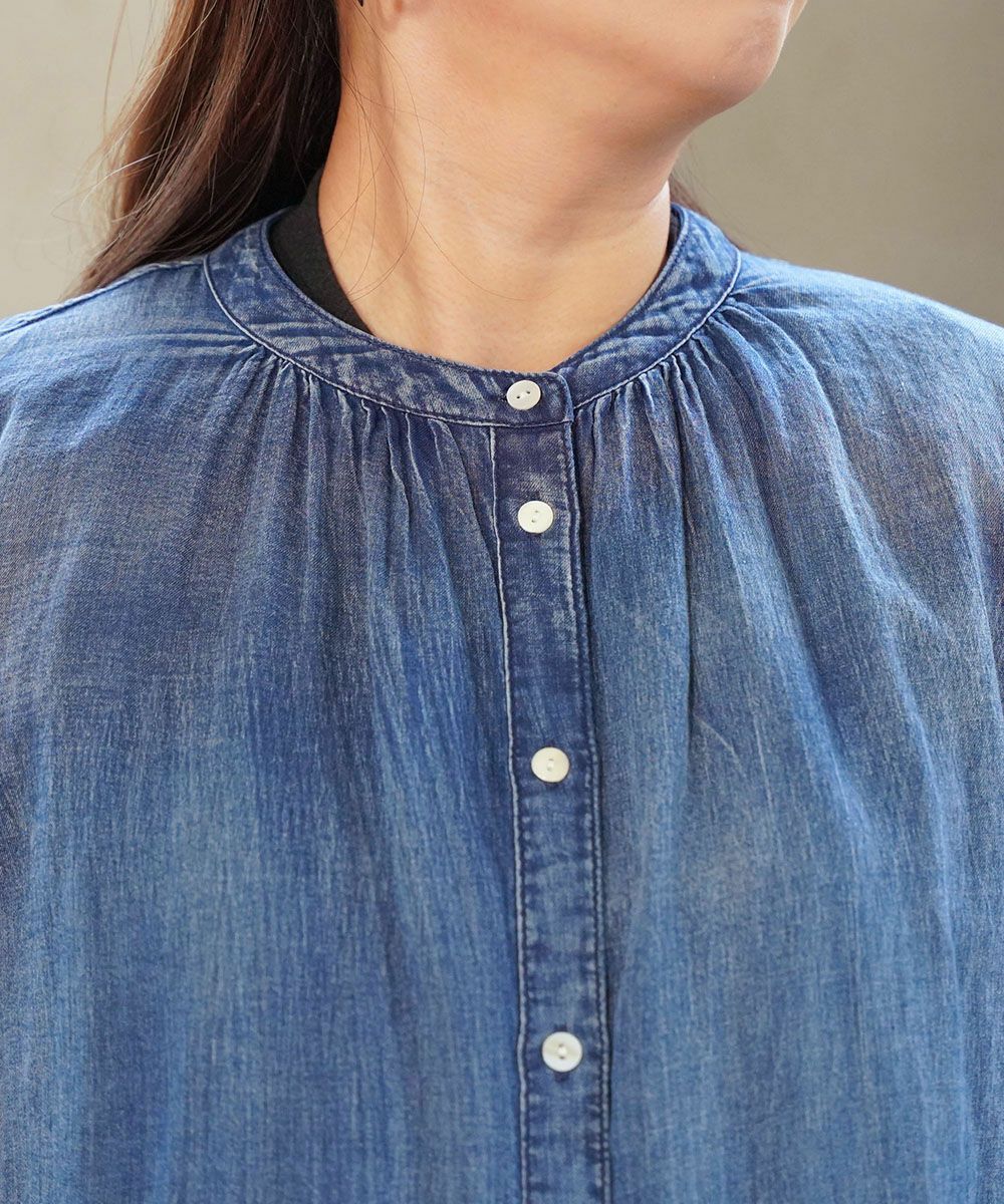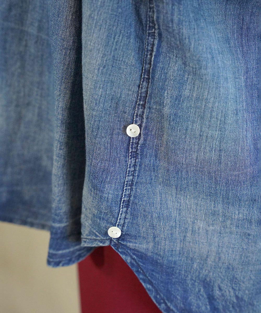 柔らかな生地感のデニム風シャツ。