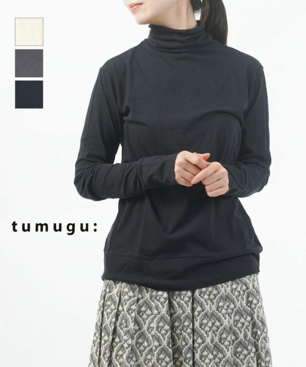 tumugu(ツムグ)の人気定番素材「フェザリーコットン」のタートルネック。