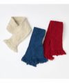スラブ感のある太いウール糸をざっくりとした手編みのような風合いに編み立てたミニマフラー。