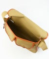 トップとポケットのフラップ部分はブライドルレザーで縁取りされ、