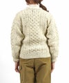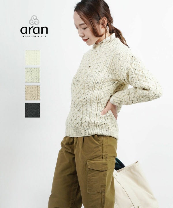 数種類のアラン模様のパターンを組み合わせてデザインされたこちらのアイテムは、