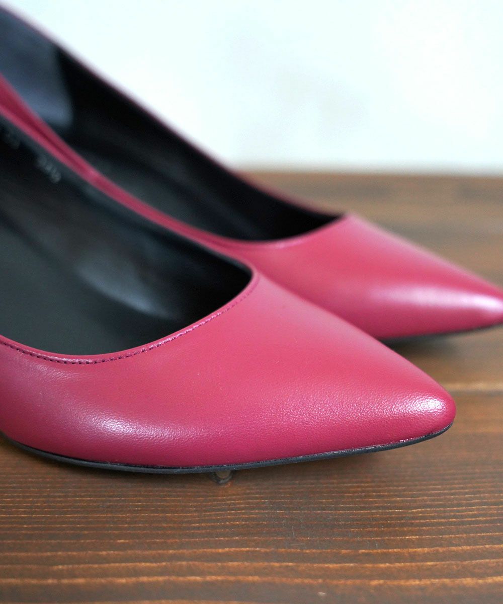 レザー チャンキーヒール ポインテッドトゥ パンプス