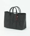 プラスチックのコードを丁寧に編み込んだ、独特の模様編みが目を引くアイテム。