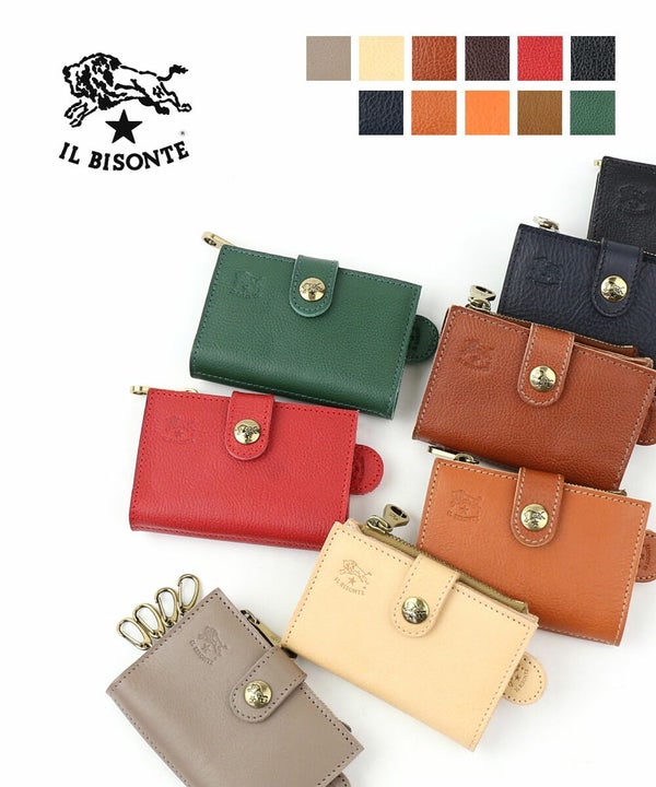 IL BISONTE(イルビゾンテ)レザー キーリング付き 二つ折り キーケース コインパース 小銭入れ