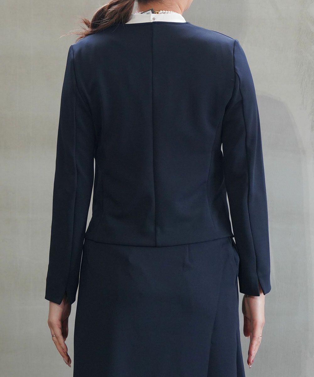 ププラらしい上質感が楽しめるノーカラージャケットです。