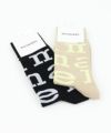 marimekkoのブランドロゴをダイナミックにあしらったソックス。