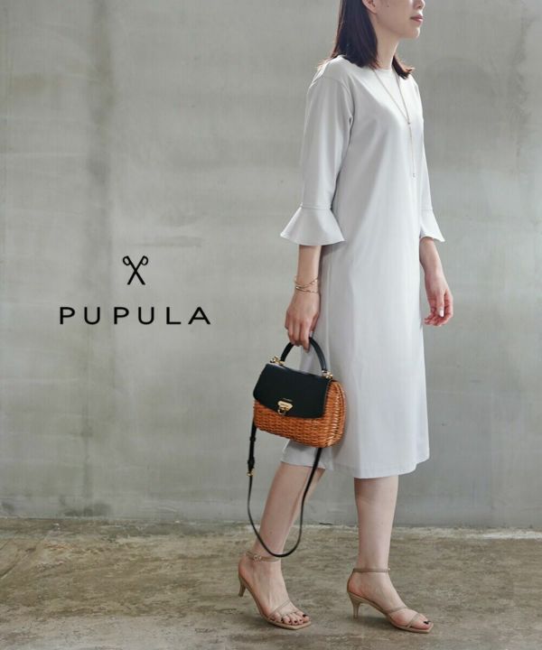 PUPULA(ププラ)サラツイルトリコット 袖フレアワンピース