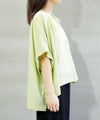 身体のラインを拾いにくい、ゆるりとしたシルエットのトップスです。