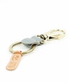 ロゴマークの型押しやレザータグがポイントになったシンプルなキーリング。