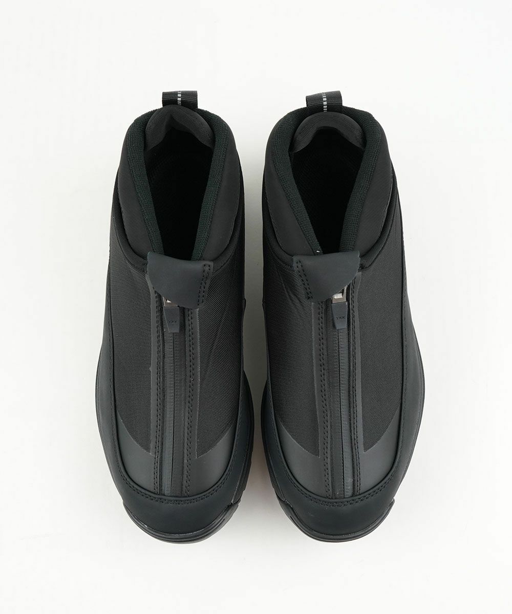 アッパーは着脱しやすいジッパーを搭載しながら、撥水加工を施したマテリアルで