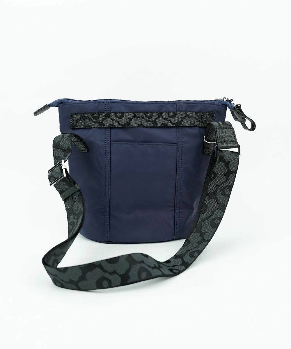 マチのあるバケット型のショルダーバッグ。