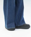 ヒップから裾にかけてグッと太くなるシルエットが特徴的。