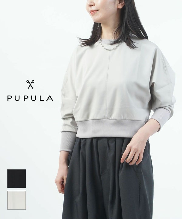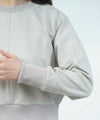 クルーネック襟をリブ素材でトミングしたコンパクトなプルオーバーです。