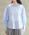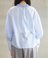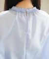 プリーツパーツを縫い付けたネックラインが印象的なブラウスです。