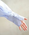 長めのデザインカフスのカッティングは、女性らしい上品な手元を演出してくれます。