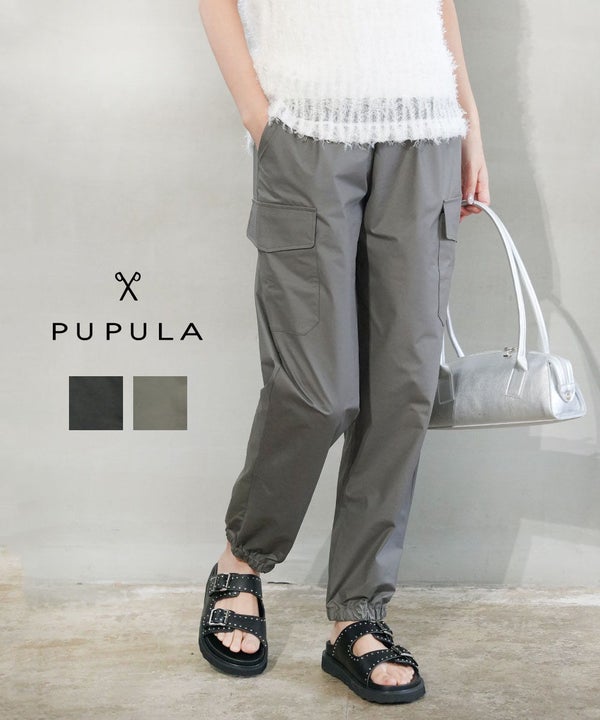裾ゴム入りですっきり見えするシルエットが自慢のカーゴパンツ。