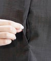 トップに1つ配したゴールドのボタンや、比翼仕立ての合わせ部分。
