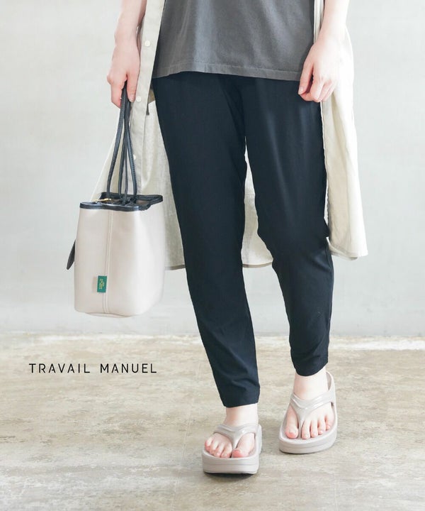 ワンピースなどの丈感長めなトップスとのレイヤードも楽しめそうなレギンスパンツ。