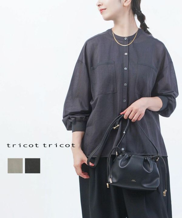 後ろ姿が印象的な、tricot'tricotのバックタックシャツ。