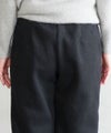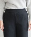 腰回りをフラットに仕上げたワイドパンツは、