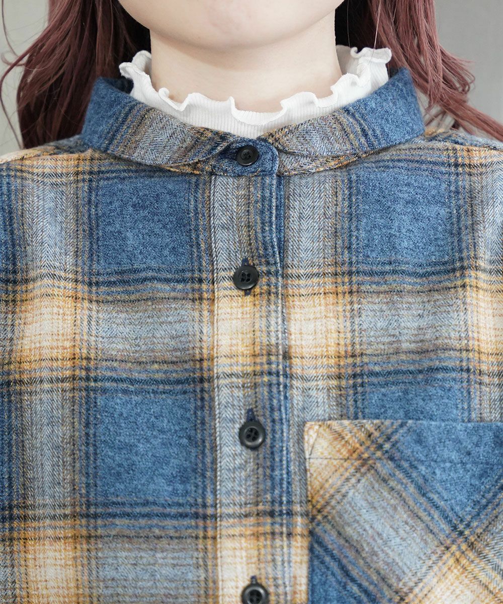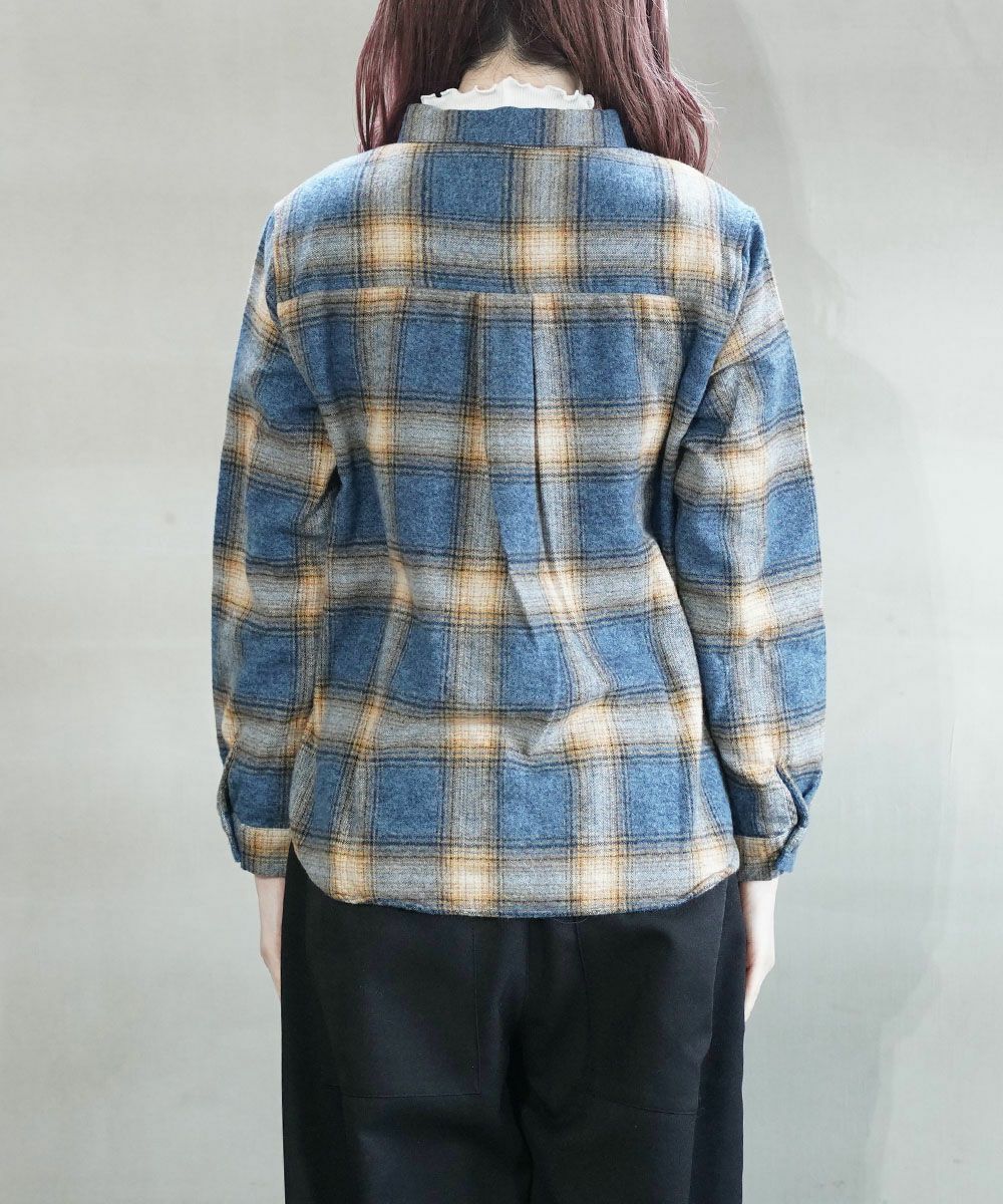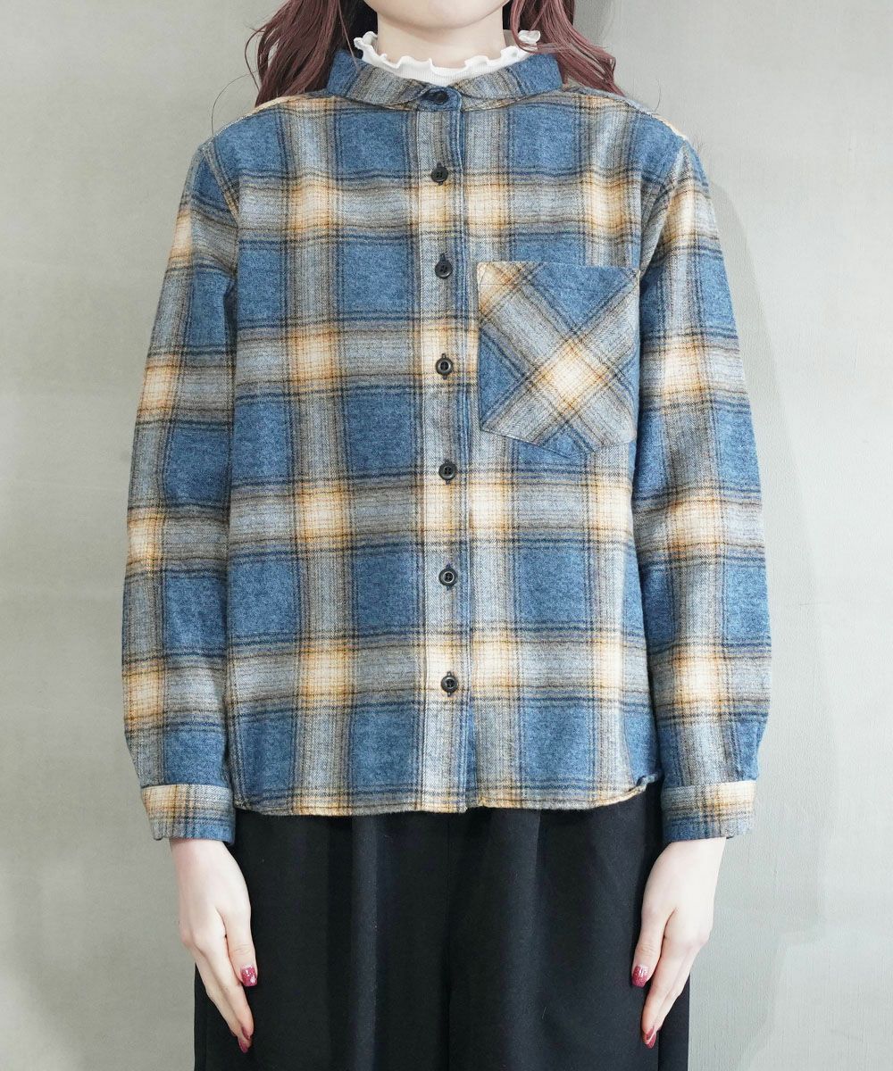 BLUE LAKE MARKET(ブルーレイクマーケット)撚杢ネルチェック ヘムラウンドチェックシャツ