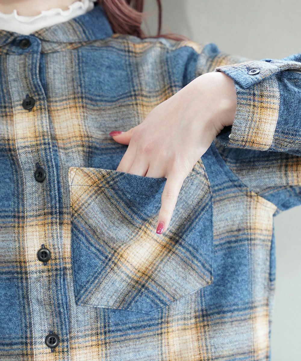 存在感のある大きめチェック柄が、トップスとして一枚で着ても主役になります♪