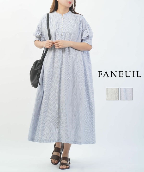 FANEUIL(ファヌル)コーマ先染ブロードストライプ ロングワンピース