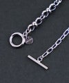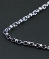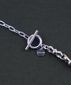 デザインの異なるパーツをつなぎ合わせたチェーンネックレス。