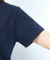 胸元のフロック加工ロゴがワンポイントに。