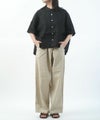naruの「ソフトリネンコットンキャンバス タックストレートパンツ」。