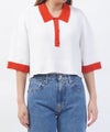 バイカラーが可愛い、ANTHOMの「コットンクロップド丈ポロ」。