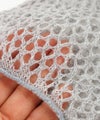 先にレース編みのような編み柄を施し、女性らしい雰囲気に。