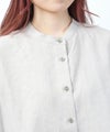 ボタンをしっかり留めて、シャツ風に着こなすのもおススメです。