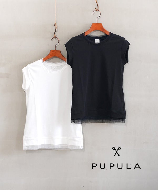 PUPULA(ププラ)アナヤスムースコットン×チュールフレンチスリーブカットソー