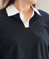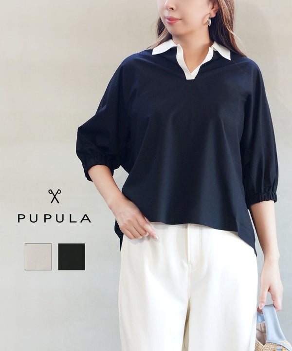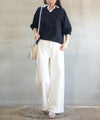 スキッパー仕様のシャツ襟が、顔まわりをすっきり見せる上品なアクセントに。