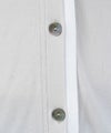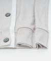 襟ぐりから前立てにかけてあしらわれた、配色デザインがさりげないアクセント。