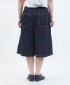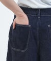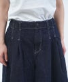 ウエストに2タック入った、ミズイロインドのハーフワイドパンツ。