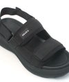 足首に掛ければよりアクティブな動きにも対応できるストラップサンダルに。